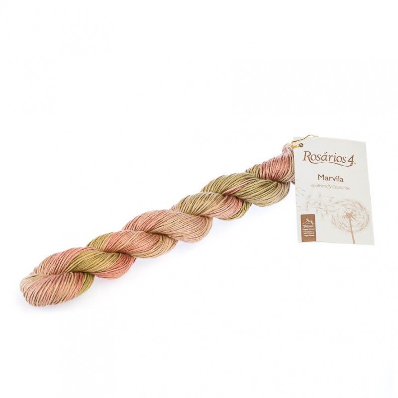 Fio de linho  matizado de tons pastel. Para blusas e xailes de Verão. Cada meada tem um alfinete dourado que pode ser usado como marcador.