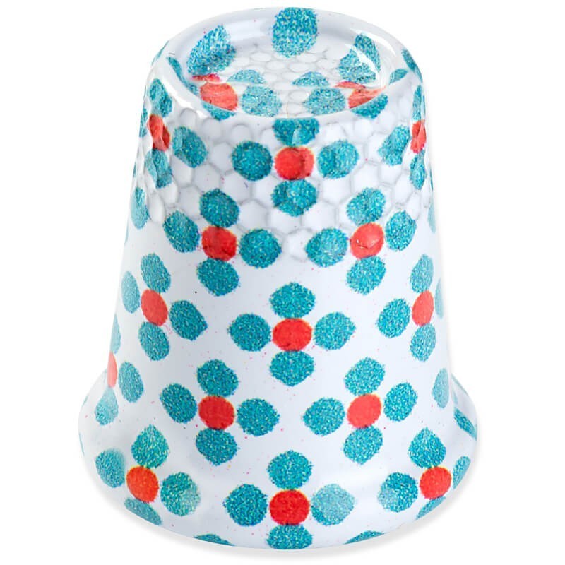 Dedal de aço revestido, com decoração floral e base antiderrapante